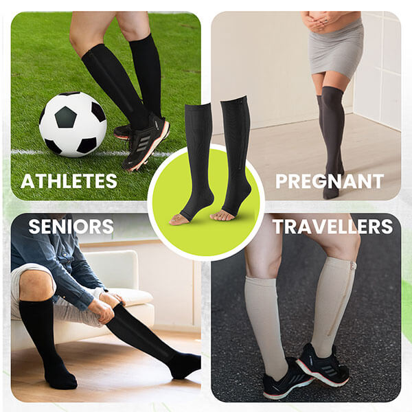 Simply unzip, place your foot inside, then zip up for quick, strain-free application. Perfect for nurses, frequent travelers, office professionals, or anyone experiencing foot fatigue, HYKLE compression socks integrate effortlessly into your daily routine—wear them during long flights, busy work shifts, or post-exercise recovery.